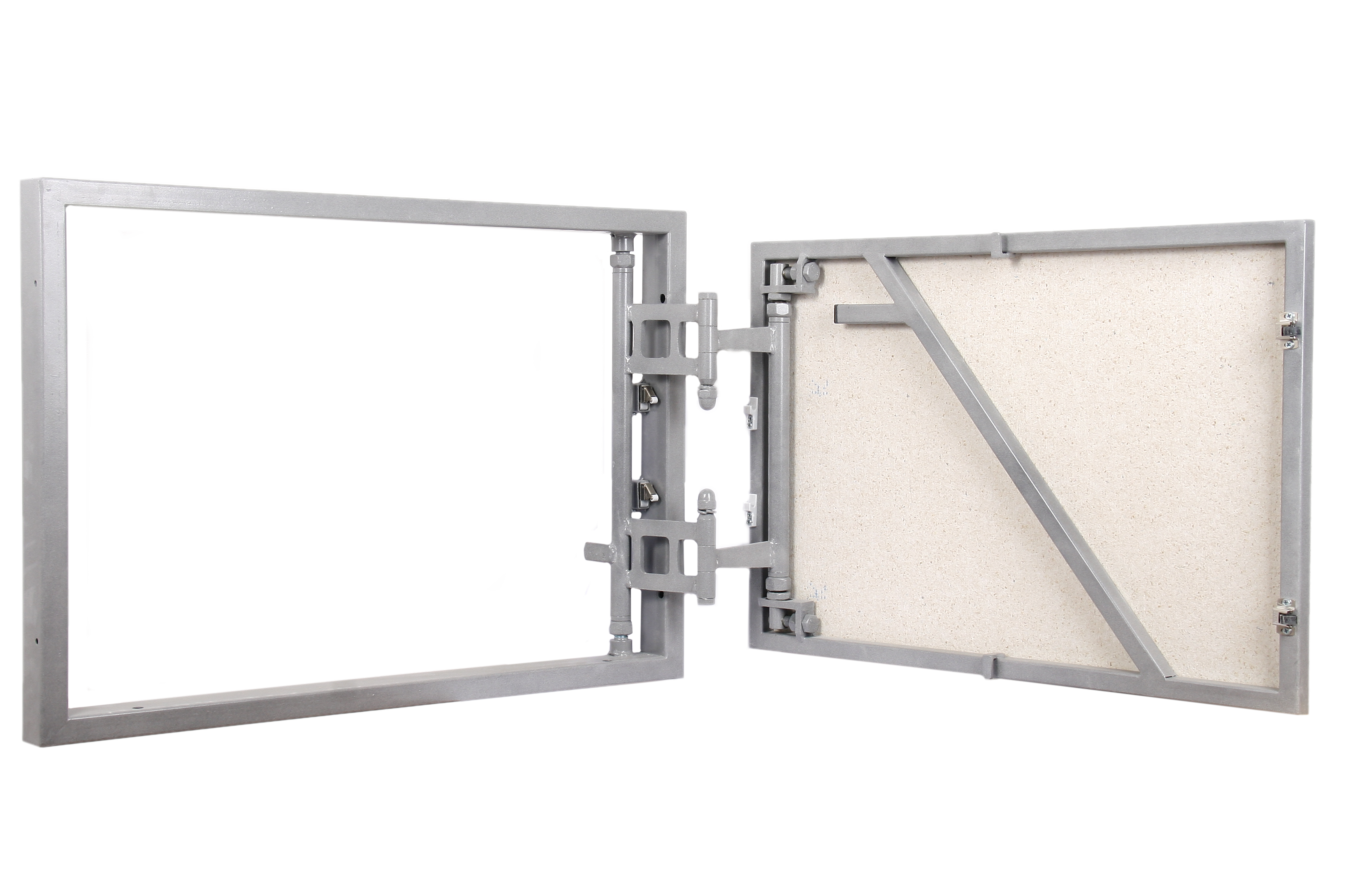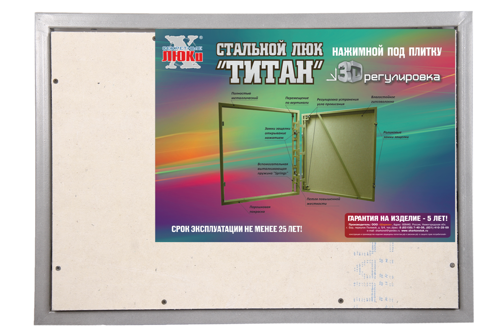 Скрытый люк нажимной Титан 800х600 мм уникальная серия для широкоформатной тяжелой плитки, большой грузоподъемности. Предназначен для установки в большие нестандартные проемы ниши стены и последующего скрытия сантехнических коммуникаций как бойлер, системы нагрева, счётчики воды, канализационные трубы, фильтры очистки.