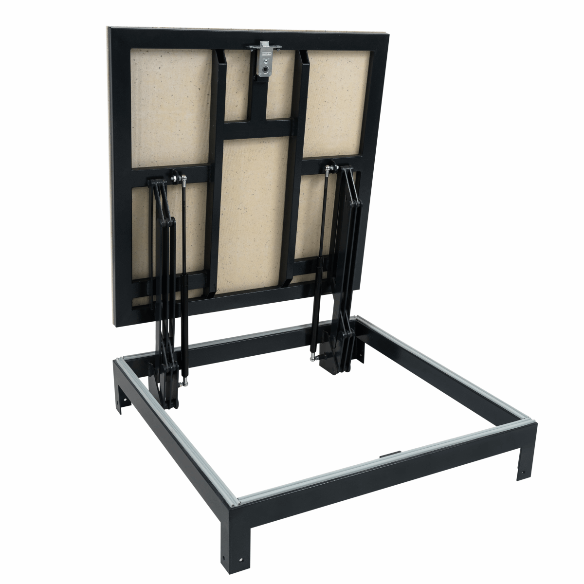 Люк в подвал с амортизаторами «Погребок Лифт» размеры 800х800 мм — это прочное, функциональное решение для маскировки проёма в полу, обеспечивающее простой и удобный доступ к подвалу, погребу или иным помещениям, расположенным ниже уровня пола. Его конструкция включает ножничный подъемный механизм с выдвижной крышкой, которая полностью скрывает весь механизм и придаёт изделию аккуратный и стильный внешний вид.